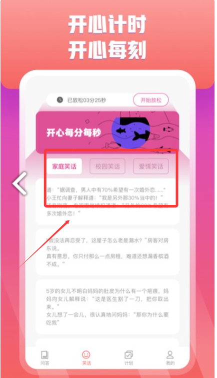2,点击下方工具栏,点击我们想要了解的相关可以逗您一笑。