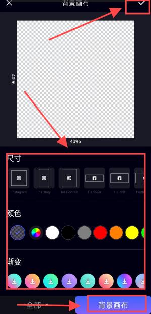 2、添加背景画布,可以换颜色,点击右上角确认背景。