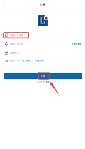 2、填写手机号码获取验证码,设置密码后即可注册成功。