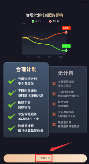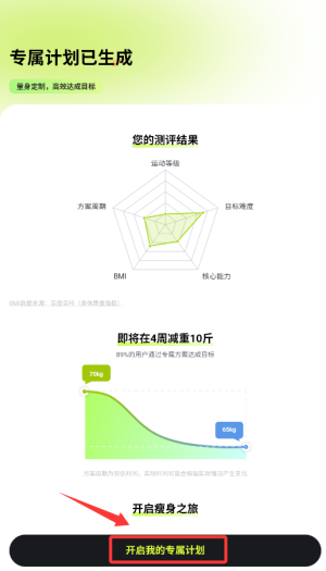 1、智能计划定制,采用AI算法分析用户身体数据,生成个性化的科学减重方案 。