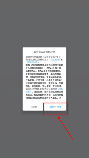 1、打开益阳智慧出行app,点击“同意并继续”。