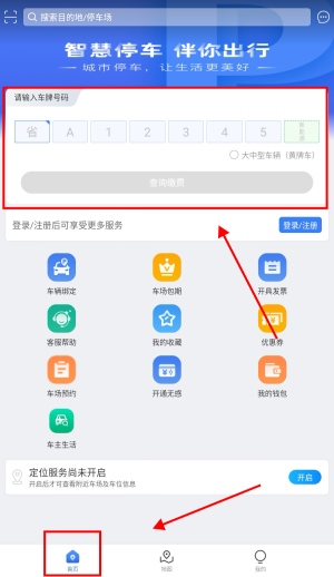 3、在首页中可以输入车牌号即可查询停车缴费。