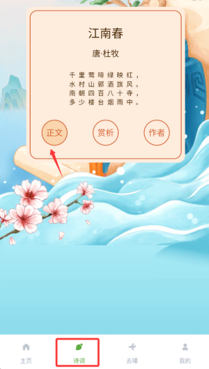 2、点击诗词,即可看到诗词,可以点击正文。