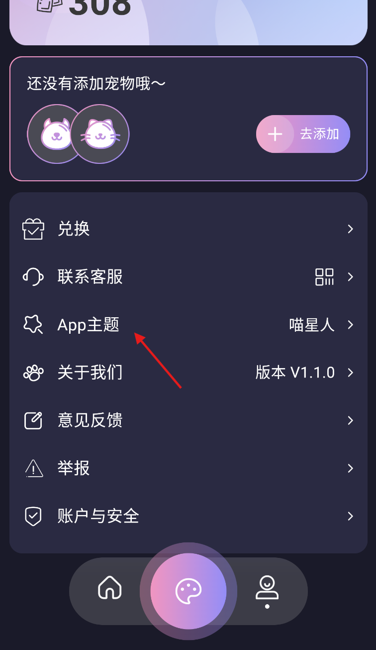 2、点击APP主题。