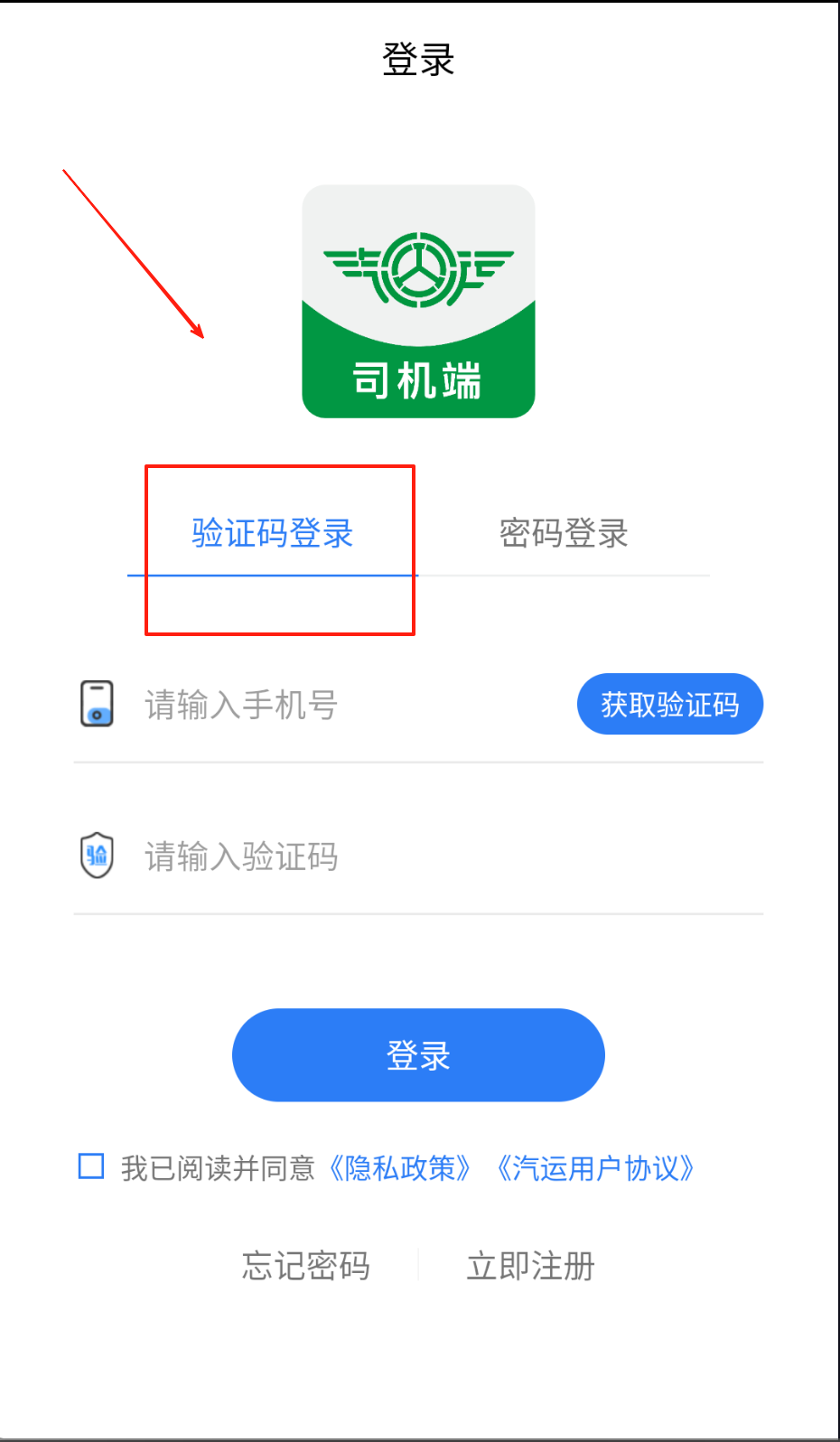 3、验证码快速登录:在登录页选择验证码方式,输入手机号后点击获取按钮,收到短信填入验证码,勾选协议后立即登录。