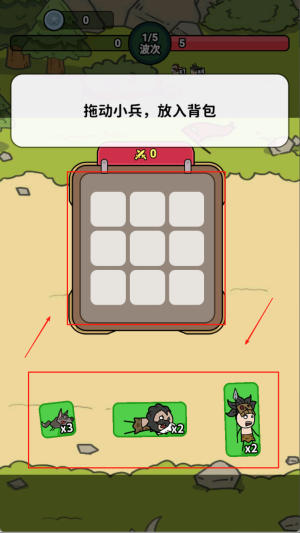 2、将小兵合理排布,确保背包放满。