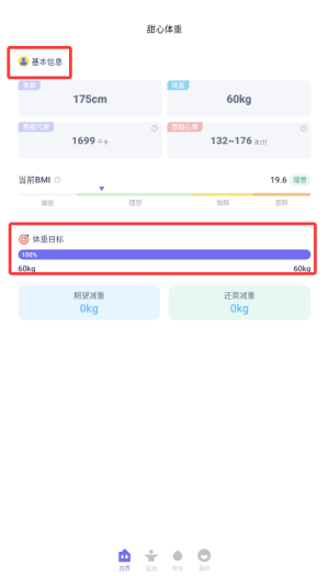 1、首次使用需填写身高、年龄等基础信息,系统将推荐合理体重区间。