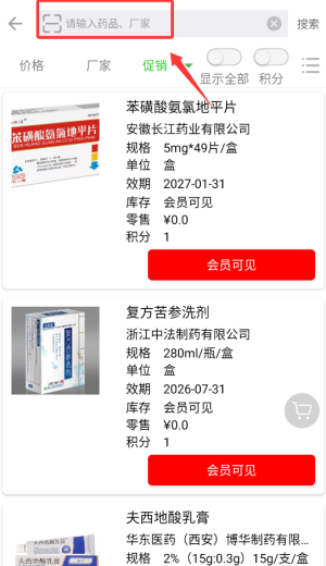 2、搜索需要查找的药品。