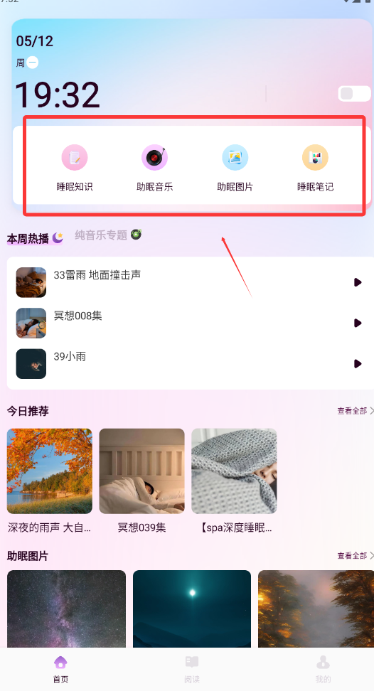 3、可以查看推荐项目,帮助助眠。
