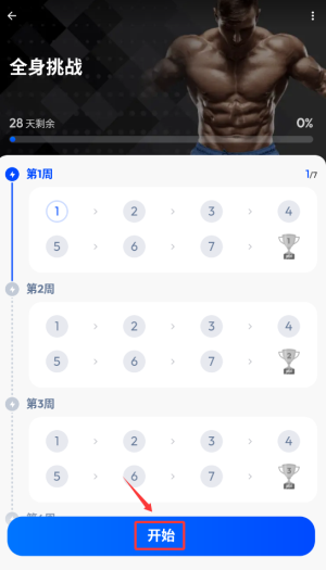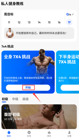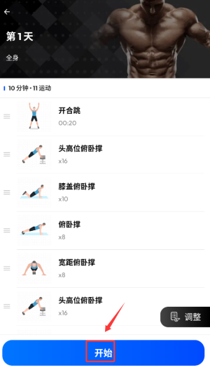 2、点击"立即训练"按钮,系统将自动加载预设的健身方案。