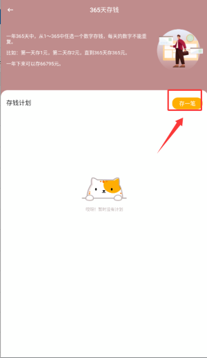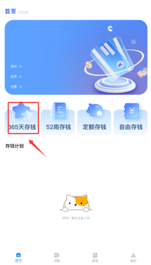 1、启动应用后,在首页选择"365天存钱"功能进入计划管理页面。