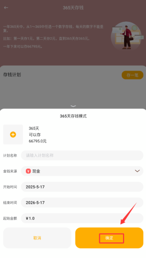 1、首次使用建议设置"365天挑战",系统将自动分解每日储蓄金额。