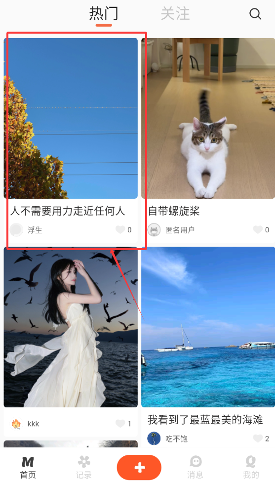 1、进入首页后,可以先翻阅下别人心情日记,点击进入即可。