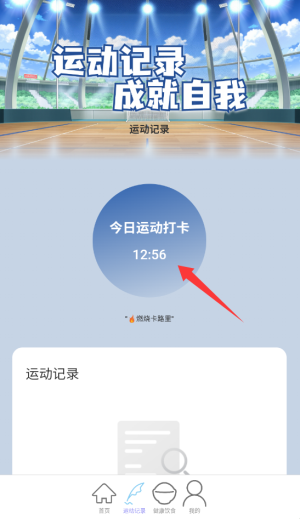 1、启动应用后,在首页选择"运动记录"功能进入记录管理页面。