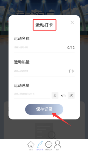 2、点击"今日打卡"按钮,进入运动数据录入界面。