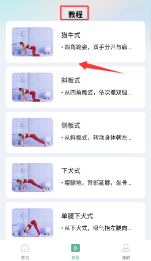 2、浏览不同难度级别的体式教程,点击目标动作查看详解。