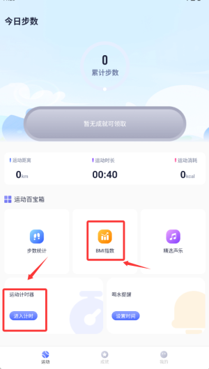 3、返回首页点击"运动计时",实时记录步行数据和消耗卡路里。