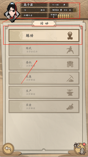 1、进入游戏后选择初始门派与出身背景,了解角色基础属性,开始江湖旅程。