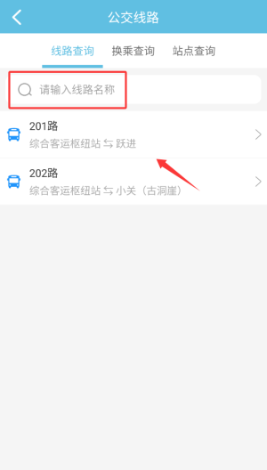 2、在搜索框内输入公交线路名称或编号,即可获取相关线路的运营信息。
