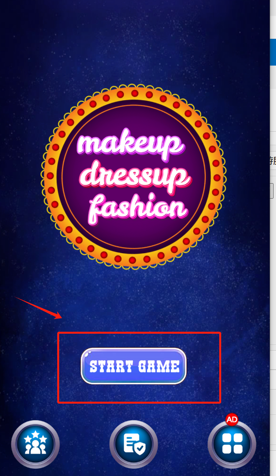 2、点击START GAME按钮开始游戏,还能点击广告图标查看广告。