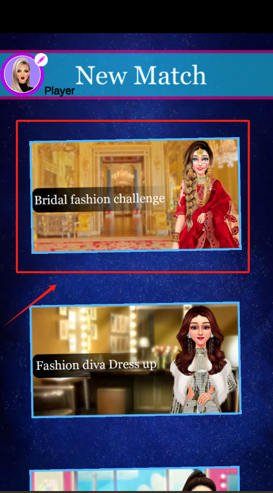 3、点击下方蓝色卡片Fashion diva Dress up参与时尚达人换装挑战。