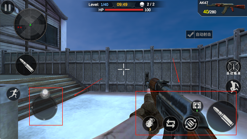2、左侧为移动控制区域,右侧是瞄准与射击按钮,上方显示弹药数量和生命值,便于掌握当前状态。