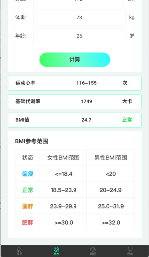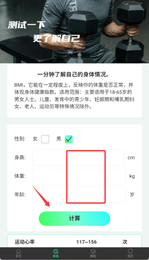 2、根据提示准确填写身高、体重等基本信息,点击"计算"获取专属建议。