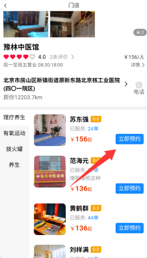 2、在搜索栏输入关键词(如“肩颈调理”),即可浏览相关服务详情页,对比不同医师的资历与预约档期。