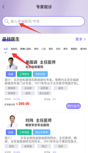 2、浏览专家列表时,可通过科室、职称等条件筛选,快速定位目标医师的出诊信息。