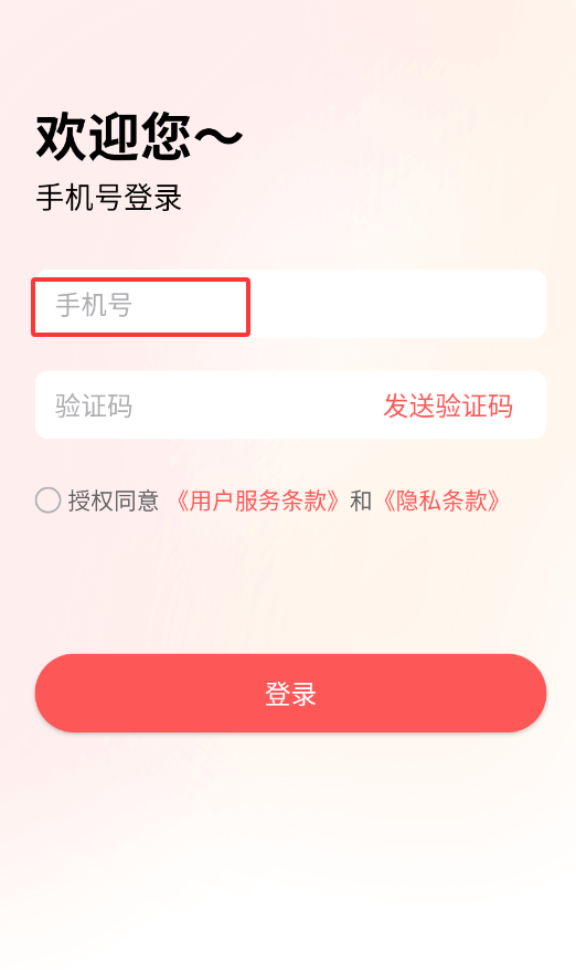 1、启动悦工健园APP后,在登录页面输入本人实名认证的手机号码。