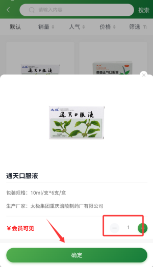 3、选定药品后调整购买数量,点击"加入购物车"或"立即购买"按钮完成下单流程。