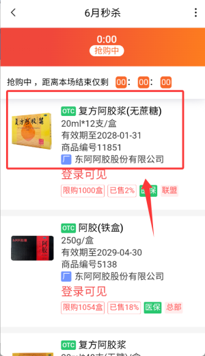 2、浏览活动专区展示的各类药品,根据需求点击感兴趣的商品查看详细说明。
