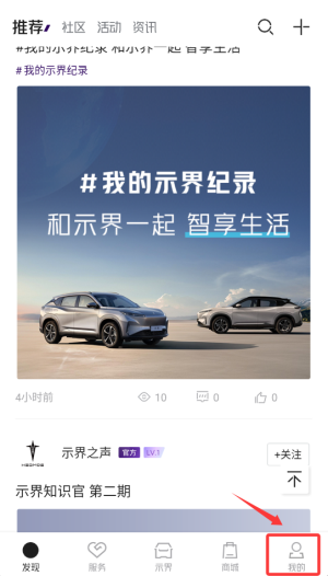 1、启动示界APP后,在首页右下角找到"我的"图标,点击进入账户管理页面。
