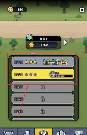 1、开始游戏后可以选择不同的关卡或试炼模式,点击进入相应的地图开启战斗布局。