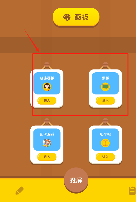 1、点黄色画板按钮,或选左上角普通画板框,进入基础绘画界面开始涂色。