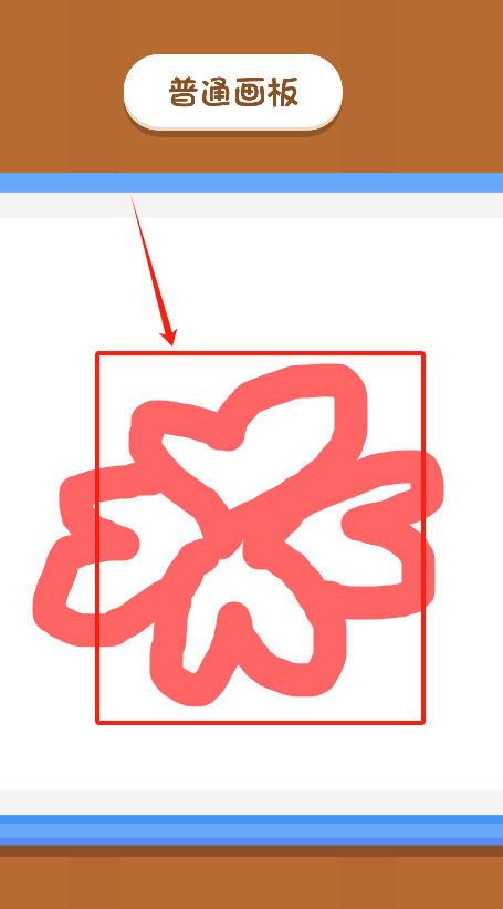 3、看到红色花朵图案,拿起画笔在白色区域自由创作,画出你喜欢的图案。