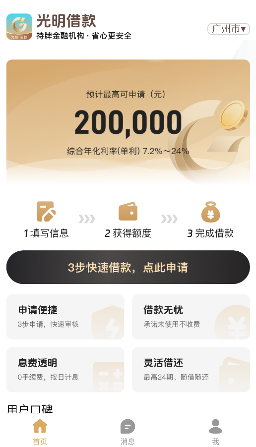 光明借款急用钱可以试试这个借款APP,正规平台比较安全。填个资料就能申请,最高能借20万。这个APP审核速度挺快,而且到账也不慢。额度可以循环用,下次借钱更方便。如果你真的临时缺钱周转的,那你就用这个挺合适,快点去下载试试看吧。