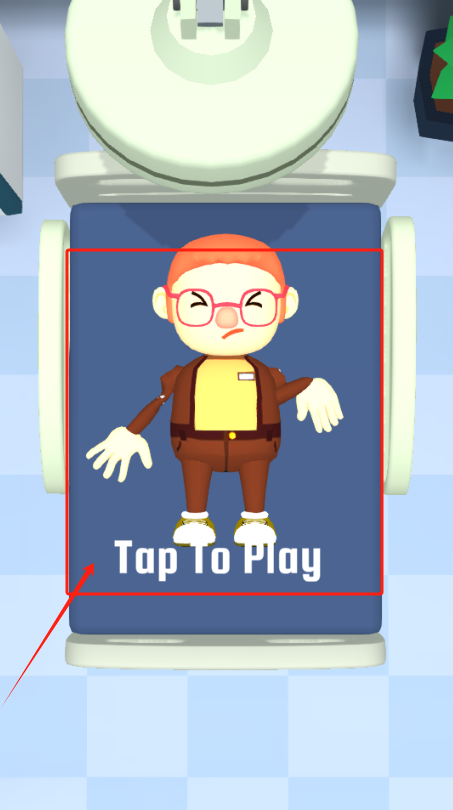 2、点屏幕任意位置开始操作,红眼镜小人站在蓝色区域,背景是蓝白格子。