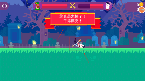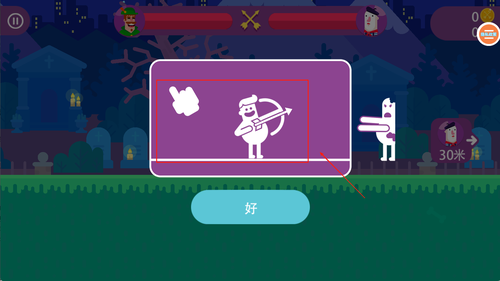 1、进入游戏后选择关卡开始挑战,滑动屏幕调整瞄准角度,长按弓箭按钮蓄力发射,观察风向与距离提高命中率完成击杀。