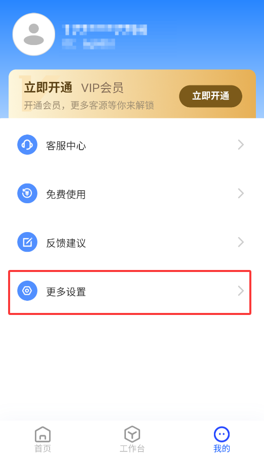 1、登录APP后进入"我的",选择下方的"更多设置"选项。