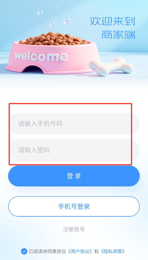 3、注册成功后,使用手机号和密码即可登录商家管理后台,开始店铺运营。