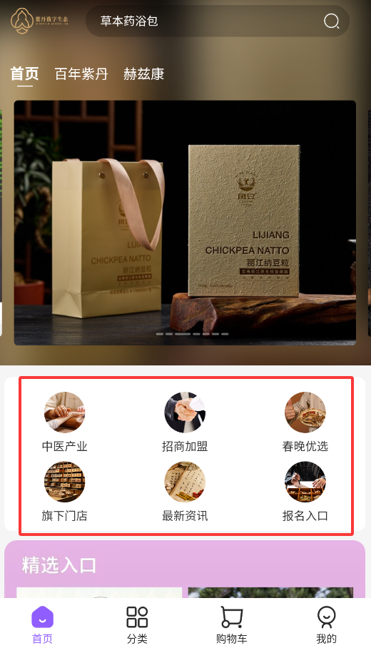 3、中药养生专区。与百年老字号药企合作,提供道地药材和养生保健品,专业药师在线咨询服务。