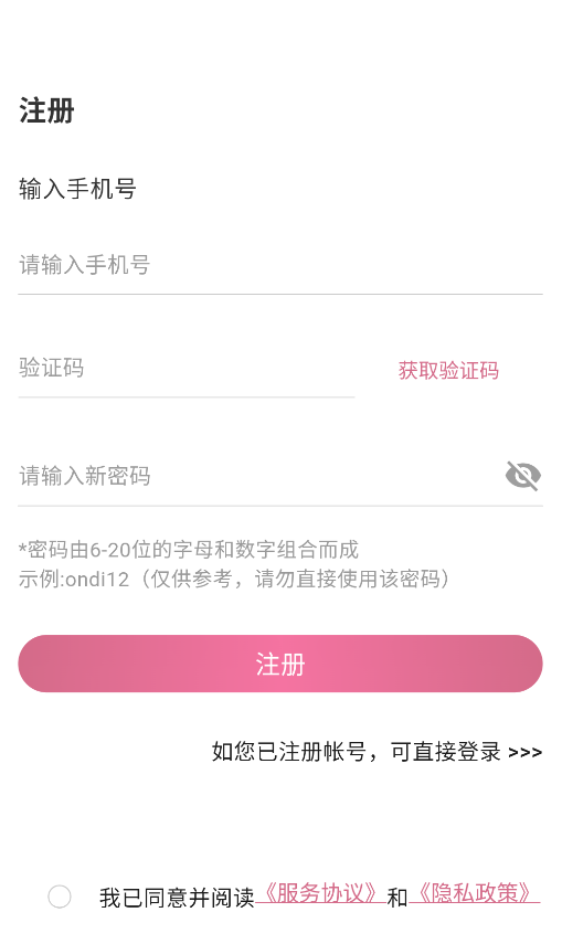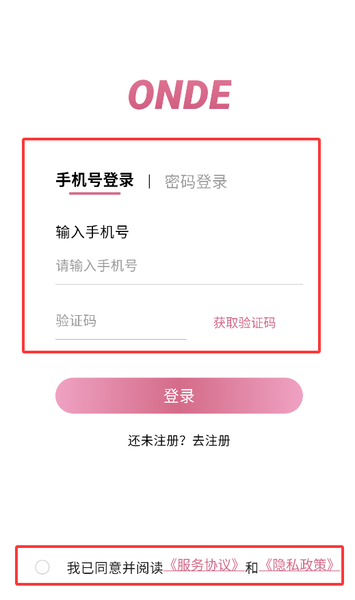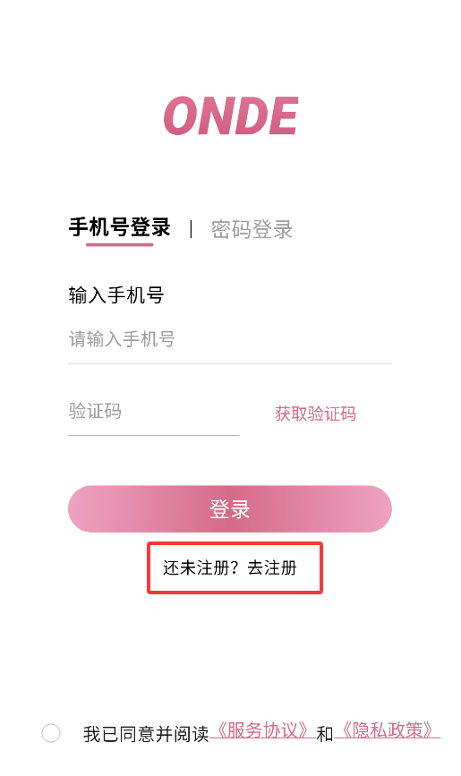 1、启动APP后,在登录页面点击"去注册"选项,进入账号创建流程。