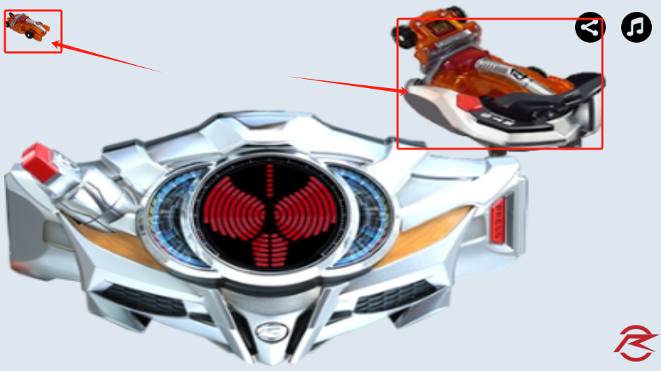 3、腰带配件特写,橙色小车是变身道具,黑色部件是载具连接装置。