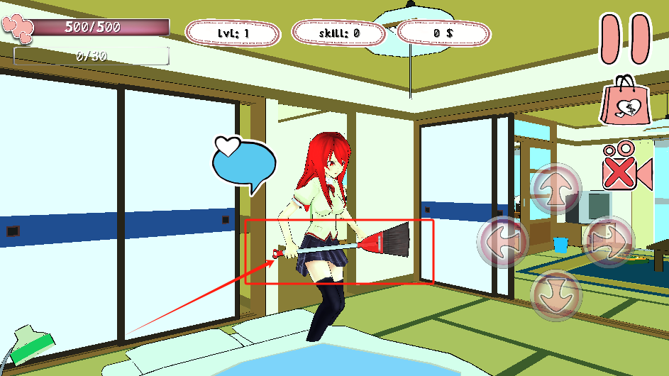 3、控制角色打扫卫生,注意左上角血量和等级,右下角显示金钱数。