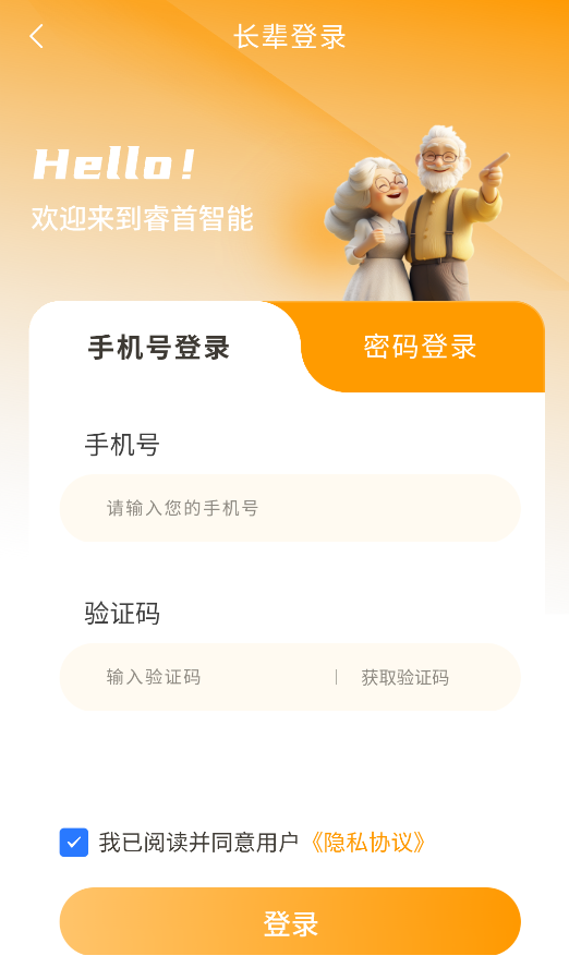 2、选择“长辈模式”登录(大字体、简易操作),支持语音指令控制基础功能。