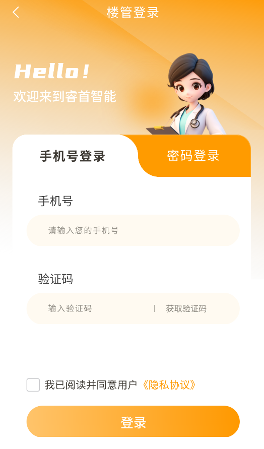 3、物业人员使用“楼管账号”需输入工号+动态密码,权限分级管理小区设备。