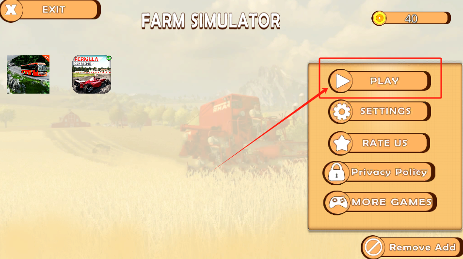 1、点PLAY开始游戏,EXIT退出,其他按钮可以看设置或评分。