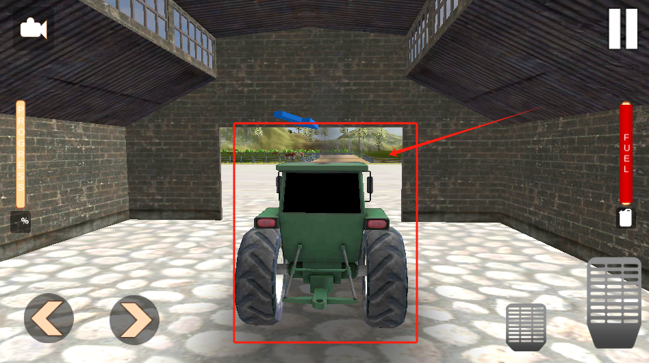 3、控制绿拖拉机移动,看右边油量表,别让油用完。