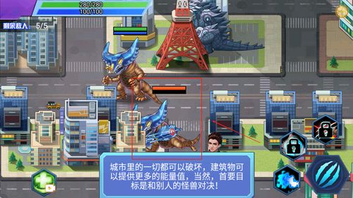 2、左侧控制机甲移动方向,右侧用于攻击和释放技能,合理搭配提升输出效率。